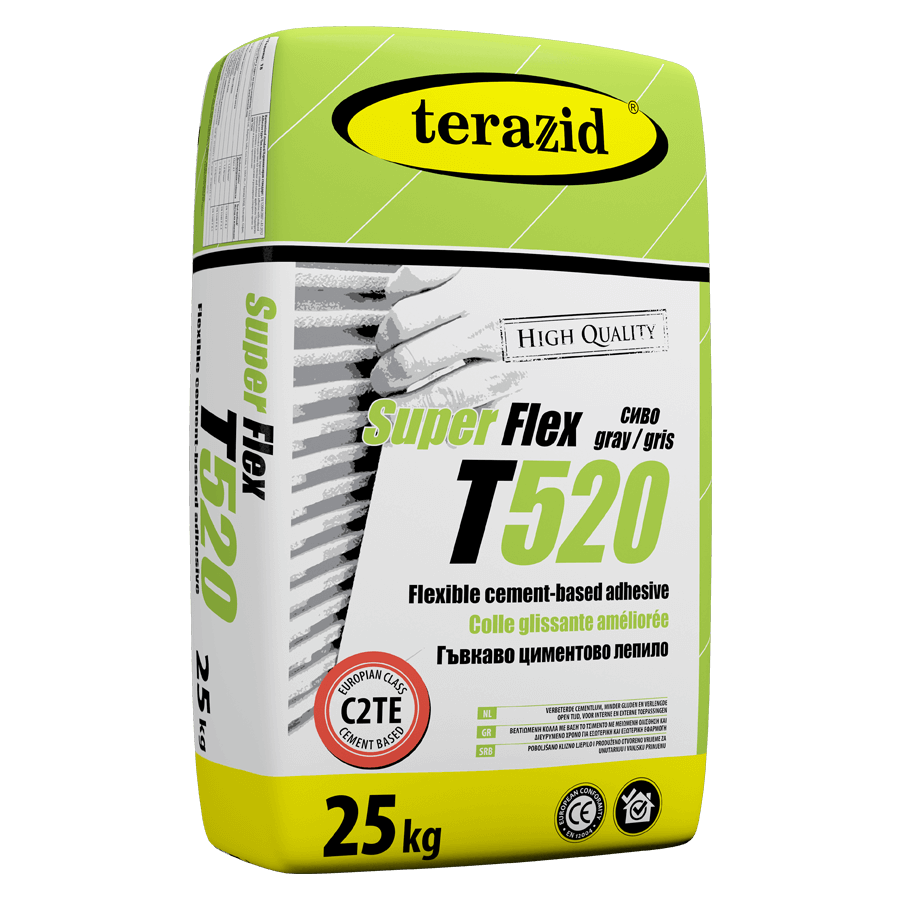 Лепило за полагане на фаянс и теракота, за лепене по тънкослойния метод; водо- и мразоустойчиво, клас C1 (съгл. EN 12004).